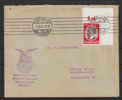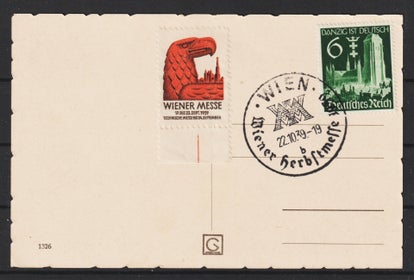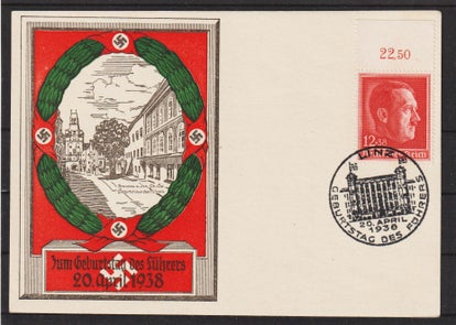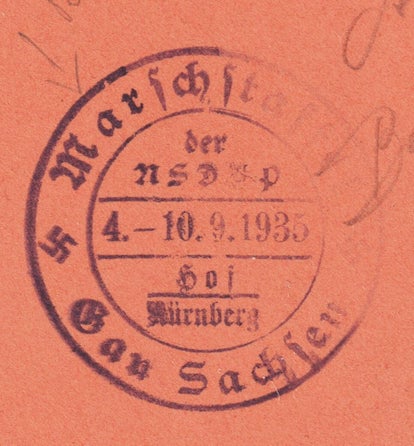 Stempel BERLIN + WIEN auf der Marke, daneben gesetzt seltener Stempel NACHRICHTENSTURM 3/NW SA DER NSDAP