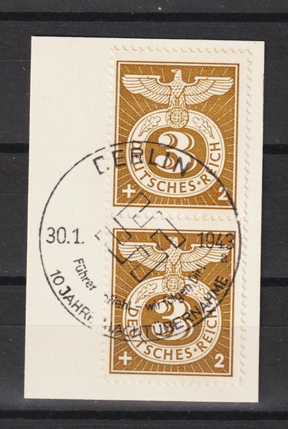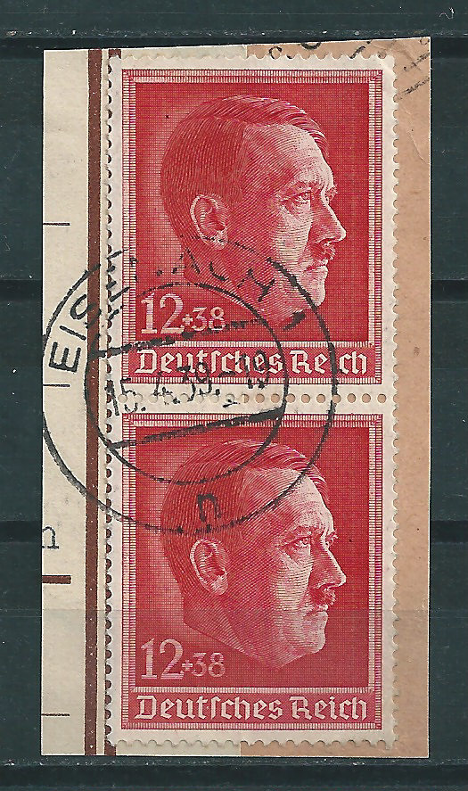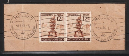 MiNr. 907 senkrechtes Paar vom Unterrand auf Briefstück, Stempel: KEMNATH STADT 7.3.43