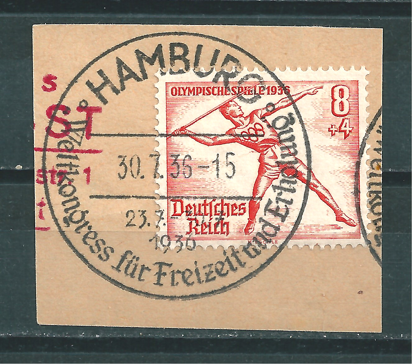MiNr. 622 Briefstück, Ersttagsstempel 30.6.36, Katalogpreis: 200,00 €