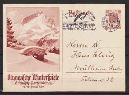 Ganzsache Karten P 226 vom 11.2.39, Stempel: “NSFK Ski Wettkämpfe des NS Fliegerkorps 10.-12.2.1939”
