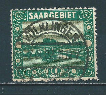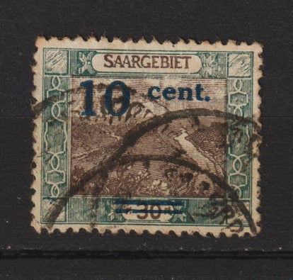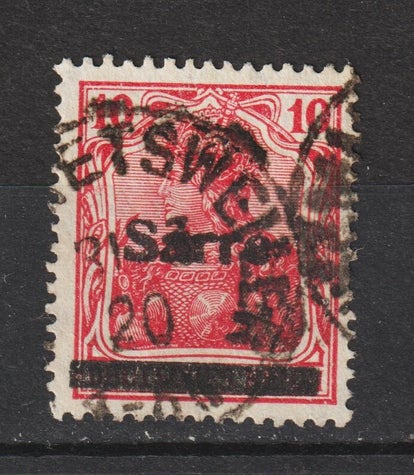 Saar MiNr. 72 AI gestempelt, Plattenfehler VIII: 0 der Wertziffer 10 unten abgeschnitten, Michelwert: 32,00 €