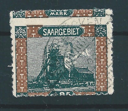 Saar MiNr. 71 gestempelt, Abart: Sichel über T von SAARGEBIET