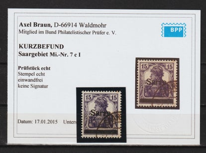 Saar MiNr. 7 c I Befund Braun BPP