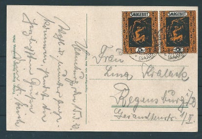 Mischfrankatur Saargebiet, Deutsches reich 1.3.1935 auf Karte