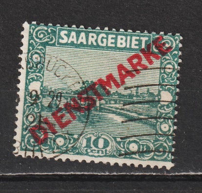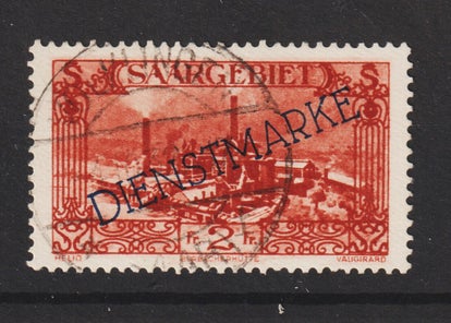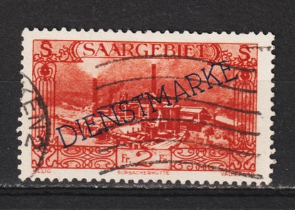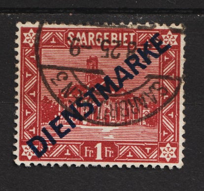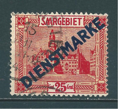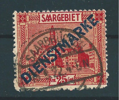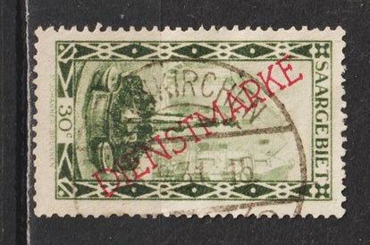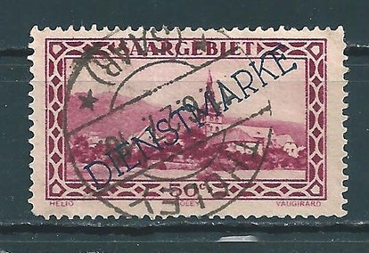 Saar MiNr. D 26 gestempelt, Plattenfehler: D von DIENSTMARKE 2 mal gebrochen, Michelpreis: 30,00 €