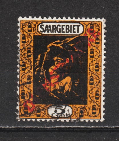 Saar MiNr. D 2 gestempelt, Abart: zwei weisse Balken im Oberschenkel des Arbeiters