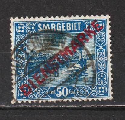 Saar MiNr. D 3 gestempelt, Plattenfehler V: dicker Farbfleck am rechten Saarufer, Katalogpreis: 18,00 €